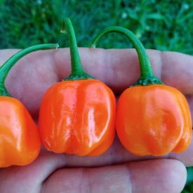 Сорт острого перца, который был создан в 2014 году компанией Pepperlover. HRseeds у которых мы покупали семена для репродукции предупреждали, что сорт не до конца стабилен и могут быть дальнейшие расщепления. Так и получилось. Из пяти растений одно получилось с вытянутыми стручками, острота которых превышает 100 тыс сковиллов. Этот сорт у нас в каталоге называется Aji Calabaza long.