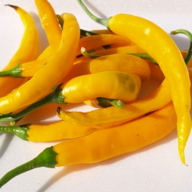 Очень продуктивный сорт острого перца. Растения высотой до 150 см очень кустистые. Стручки длиной до 15 см золотисто-желтого цвета. Острота 15 000 — 20 000 сковиллов. Стенка тонкая. Мякоть с фруктовым ароматом и вкусом. Срок вегетации 170–180 дней. Урожайность очень высокая. Для выращивания в теплицах и парниках. Хорошо подходит для свежего употребления в сальсах и свежих салатах. За счет тонкой стенки хорошо высушивается, иногда многие стручки начинают завяливаться еще на растении.