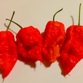 Сорт сверх острого перца из США. Острота свыше 1, 5 млн сковиллов. Растение высотой до 80 см при выращивании в теплице. Стручки с очень развитой плацентой. Аромат очень интенсивный фруктово-цветочный, вкус сладкий. Урожайность очень высокая. Сорт в стадии развития и стабилизации, поэтому еще возможны изменения. Можно выращивать в домашних условиях в горшке от 5-ти литров. Для приготовления очень острых соусов.