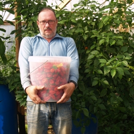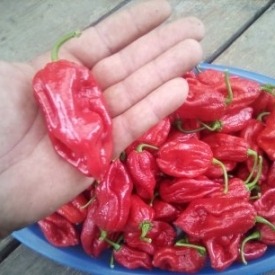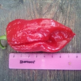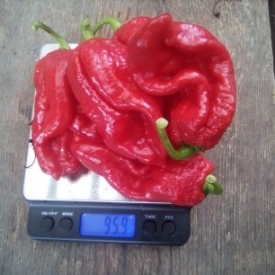 Сорт острого перца с которого в этом году нам удалось снять рекордный урожай. 22 кг 300 г с одного куста. На самом это Trinidad Douglah с небольшой мутацией, которая вызвала изменение цвета. Мутация могла возникнуть из-за супер интенсивной схемы питания с самого начала роста, но цветовые мутации красный-коричневый встречаются постоянно и при обычном выращивании больших популяций. О выращивании этого перца я много и подробно писал на нашем канале Яндекс Дзен. Любой желающий может попробовать вырастить такой перец. Острота этого перца чуть больше 1, 5 млн сковиллов.
