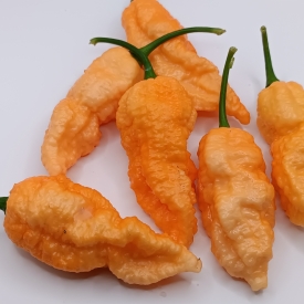 Сорт является продолжением развития очень удачного кросса между Bih Jolokia и Sugar Rush Peach. Все характеристики сохранились и по итогам выращивания 2022 года стабильность популяции выше 90%. Цвет стручков персиковый. Урожайность очень высокая.
