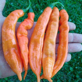 Сорт острого перца из Боливии. Есть еще желтая и кремовая разновидности, которые отличаются только цветом стручков. Растение высотой до 120 см с активным боковым ветвлением. Срок вегетации при выращивании в теплице 145–155 дней. Урожайность высокая. Хорошо завязывается при неблагоприятных погодных условиях. Острота до 10 тысяч сковиллов. Прекрасный фруктовый аромат и сладкий вкус. Хорошо подходит для употребления в свежем виде. Также можно консервировать или квасить. При выращивании в домашних условиях понадобится горшок от 4-х литров.