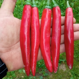 Растение высотой до 90 см. На одном растении формируется до 20 стручков сигарообразной формы длиной до 20 см. Стручки в технической зрелости темно-зеленые, глянцевые. Потом становятся красными. Вкус сладкий с небольшой кислинкой. Срок вегетации 130–140 дней при выращивании в теплице. Для свежего потребления, консервирования и сушки.
