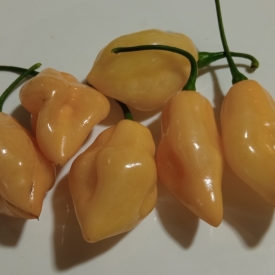 Острый перец из Бразилии. Растение высотой до 110 см при выращивании в теплице. Урожайный и неприхотливый сорт с отличными вкусовыми качествами. Вкус и аромат красных яблок с нотами винограда. Стручки в биологической зрелости становятся розово-кремовыми. Острота до 250 тысяч сковиллов. Можно выращивать в домашних условиях в горшке от 5-ти литров. Для свежего потребления и для приготовления соусов.