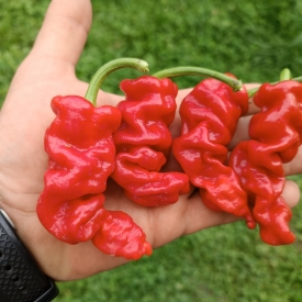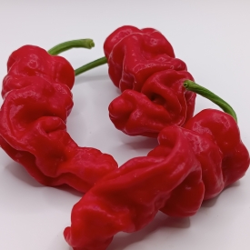 Растение высотой до 90 см. Требуется подвязка и крепление к опоре. Ветки тонкие и гнутся под весом довольно крупных стручков. Продуктивность очень высокая. Стручки сморщенные и чем-то похожи на стручки сорта, который у нас в каталоге называется Свиная кишка. Но этот сорт острее, до 15 тысяч сковиллов. Срок вегетации 130–140 дней при выращивании в теплице.