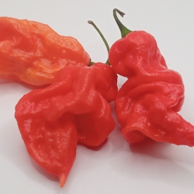 Растение высотой до 90 см с активным боковым ветвлением. Урожайность очень высокая. Острота выше чем у Bhut Jolokia и более стабильна, 1–1, 2 млн сковиллов. Аромат тропических фруктов с преобладанием нот сладкого манго. Очень хорошая улучшенная версия Джолокии. Если вы готовы эксперементировать и готовы к сюрпризам, то этот сорт для вас. Линия очень сильная.