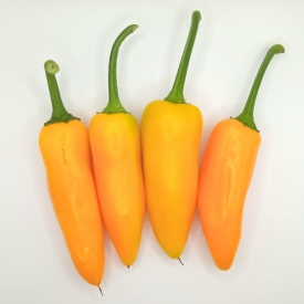 Редкий сорт халапеньо неизвестного происхождения. Есть версия, что это это расщепление Numex Limon Spiсe. Но форма стручков более вытянутая и остроконечная. Цвет тоже немного другой, более желтый с небольшой рыжиной. Острота высокая для халапеньо, до 50 тыс сковиллов.