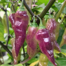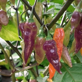 Один из самых красивых сортов перца вида c. chinense. Автор сорта Drax Diego. Растение высотой до 90 см. Ствол и ветви почти черного цвета. Листья зеленые с мелким фасетчатым рисунком из темно фиолетовых сосудов. Смотрится очень декоративно. Цветки темно фиолетовые, пыльники и пестик тоже почти черные. Стручки небольшие до 6 см в длину. В технической зрелости фиолетовые и глянцевые. Потом постепенно начинают перецветать в красный через разные оттенки желтого и оранжевого при сохранении фиолетового. Смотрится очень декоративно. Урожайность очень высокая. Срок вегетации 140–150 дней при выращивании в теплице. Острота до 70 тысяч сковиллов. Вкус очень сладкий, аромат фруктовый с цветочными и землистыми нотами. В домашних условиях можно выращивать в горшке от 3-х литров.