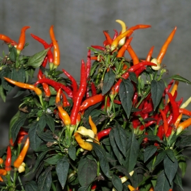 Декоративный сорт острого перца для выращивания в домашних условиях. Абсолютно съедобный. Высота растения не больше 30 см. Стручки растут вертикально вверх и собраны в пучки, которые похожи на языки пламени. В технической зрелости цвет стручков молочный, в биоогической становится красным. Срок вегетации при выращивании в домашних условиях 100–110 дней с момента всходов. Острота до 30 000 сковиллов.