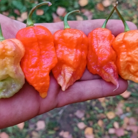Аромат мякоти очень сильный, фруктово-цветочный. Острота очень высокая, на уровне оригинальной Carolina Reaper.