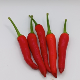 Растение высотой до 80 см, ветвистое. Стручки классической формы узко конические. В технической зрелости зеленые, потом становятся красными. Урожайность хорошая. Срок вегетации 130–140 дней при выращивании в теплице. При выращивании в домашних условиях потребуется горшок от 2 литров.