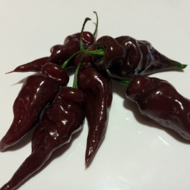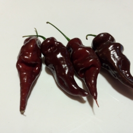 Очень необычный сорт острого перца из сортовой группы Хабанеро. Растение высотой до 70 см, штамбовое, почти без бокового ветвления. Стручки необычной формы, при созревании перецветают из зеленого в темно-коричневый цвет. Срок вегетации 140–150 дней при выращивании в теплице или в парнике. Вкус сладкий, аромат — смесь тропических фруктов. При выращивании в домашних условиях понадобится горшок от 3 литров.