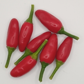 В 2-х литровом горшке высота растения будет не выше 40 см. Стручки растут вверх небольшими кластерами. В технической зрелости стручки темно-зеленые, глянцевые, пулевидной формы. Потом становятся темно-красными. Острота до 70 тысяч сковиллов. Аромат классический перечный, вкус сладкий. Есть фруктовые нотки. Урожайность высокая.