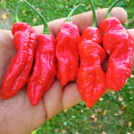 Очень редкий и очень острый сорт острого перца. Острота до 1, 8 млн сковиллов и выше. Растение высотой до 80 см с активным боковым ветвлением. Хорошая завязываемость и как следствие, высокая урожайность. 80% мякоти стручка занимает плацента. Вкус очень сладкий, аромат очень интенсивный с нотами цветов и дыни. Срок вегетации 140–150 дней при выращивании в теплице. При выращивании в домашних условиях понадобится горшок от 5-ти литров. Отлично подходит для сушки и создания очень острых соусов.