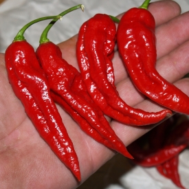 Новый и редкий сорт супер острого перца. Растение мощное до 120 см в высоту с активным боковым ветвлением. Стручки длинные, до 12 см. Острота до 1, 4 млн сковиллей. Вкус сладкий, фруктовый. Аромат очень сильный без цветочно-парфюмерных ноток. Срок вегетации 170–180 дней. Урожайность высокая. Для выращивания в теплицах и парниках. Для выращивания в домашних условиях потребуется контейнер от 10 литров.