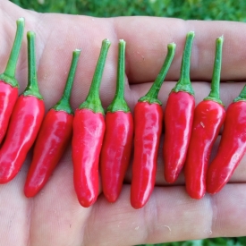 Сорт острого перца из Африки. Отличается от многих похожих сортов своим уникальным перечно-фруктовым ароматом с нотками копчености. Вкус тоже очень хороший, сладкий без горечи и кислотности. Очень продуктивный сорт. При высоте растения не больше 50 см за сезон может выдать более 50 стручков. Стручки длиной дл 4-х сантиметров пулевидной формы. Перецветают от зеленого к красному. Срок вегетации 130–140 дней при выращивании в теплице. Можно выращивать в домашних условиях в горшке от 3-х литров. Острота 50–70 тысяч сковиллов. Характер остроты агрессивный. Острота проявляется, как моментальный удар, но быстро проходит.