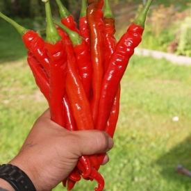 Сорт острого перца народной селекции, получивший название от рецепта квашения острого перца в Армении. Семена для выращивания этого сорта мы получили из Армении в 2014 году. Растение среднерослое, до 80 см в высоту, крепкое. Плоды остроконические до 23 см в длину, в технической зрелости имеют салатовый цвет, в биологической перецветают в красный. Острота от 1500 до 3500 SHU. Срок вегетации до технической зрелости 100–110 дней. Предназначен для выращивания в открытом грунте, в теплицах и парниках. Используется для кващения и маринования.