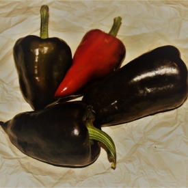 Довольно необычный сорт сладкого перца. Стручки весом до 120 грамм растут вертикально. Форма стручков конусовидная с носиком. Цвет в технической зрелости темно-фиолетовый, затем перецветает в алый. Срок вегетации 120–130 дней при выращивании в теплице или в парнике. Вкусовые качества высокии. Отлично подходит для свежего употребления в салатах, заморозки и фарширования.